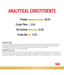 Protein: 28.0% - Fat content: 16.0% - Crude ash: 5.1% - Crude fibres: 2.1% - Per kg: Pentasodium triphosphate: 3.5 g.